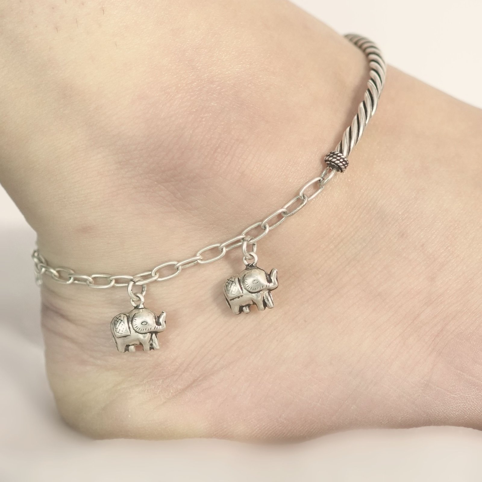 Half Kada Elephant Charm Anklet with chain link for women