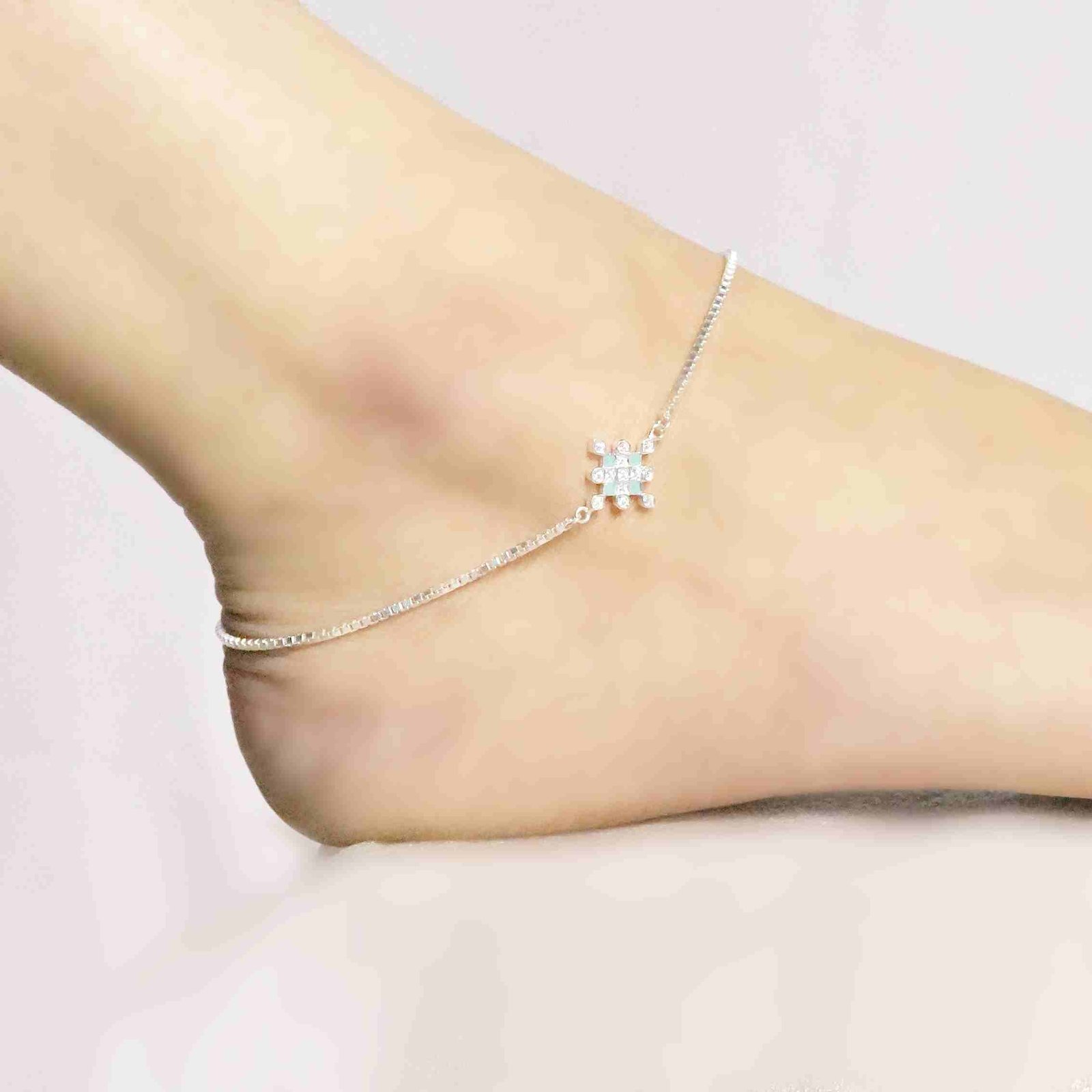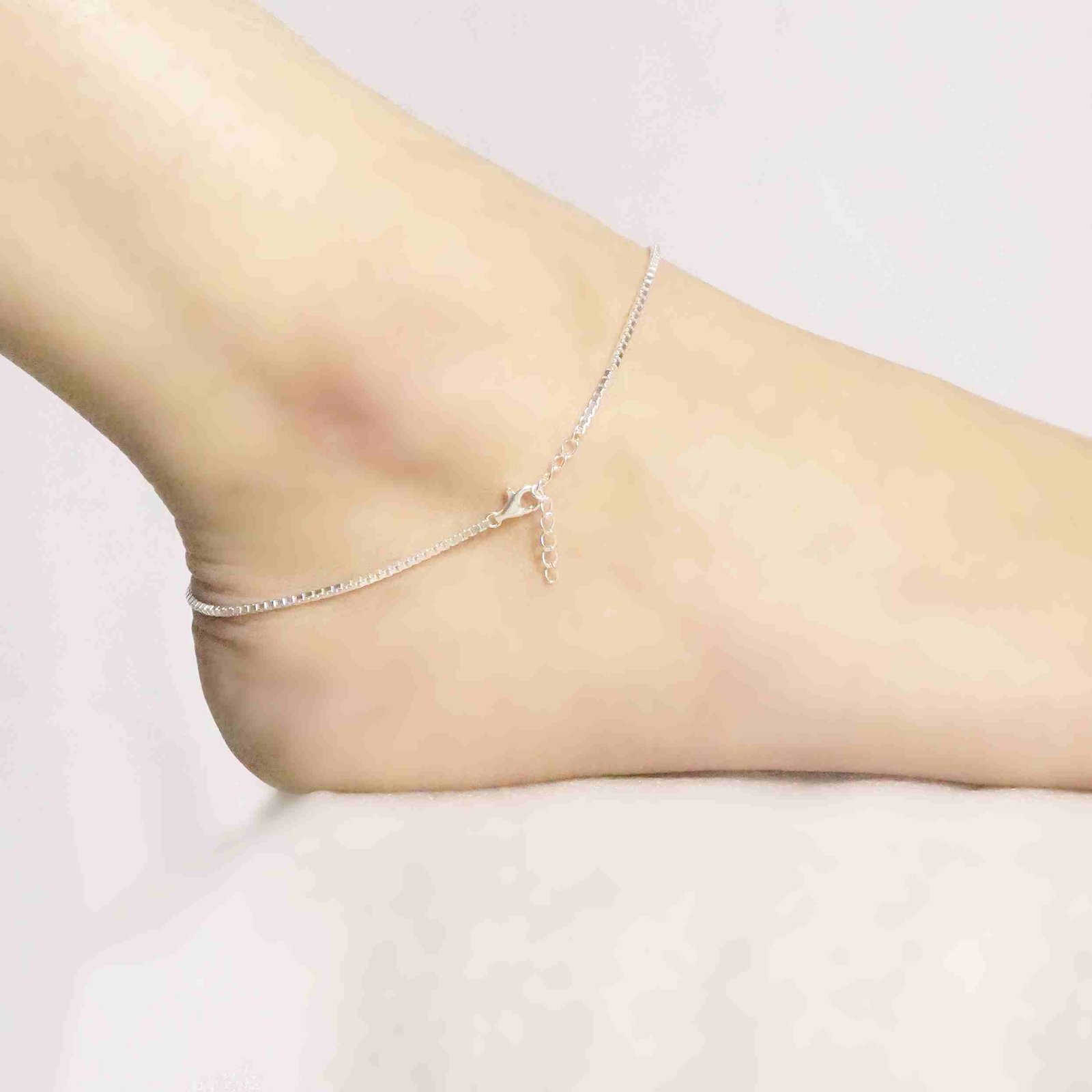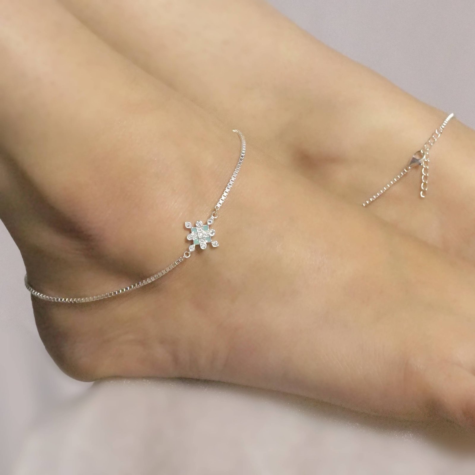 Sterling Silver Charm Flower Shape Ball Chain Italian Anklet