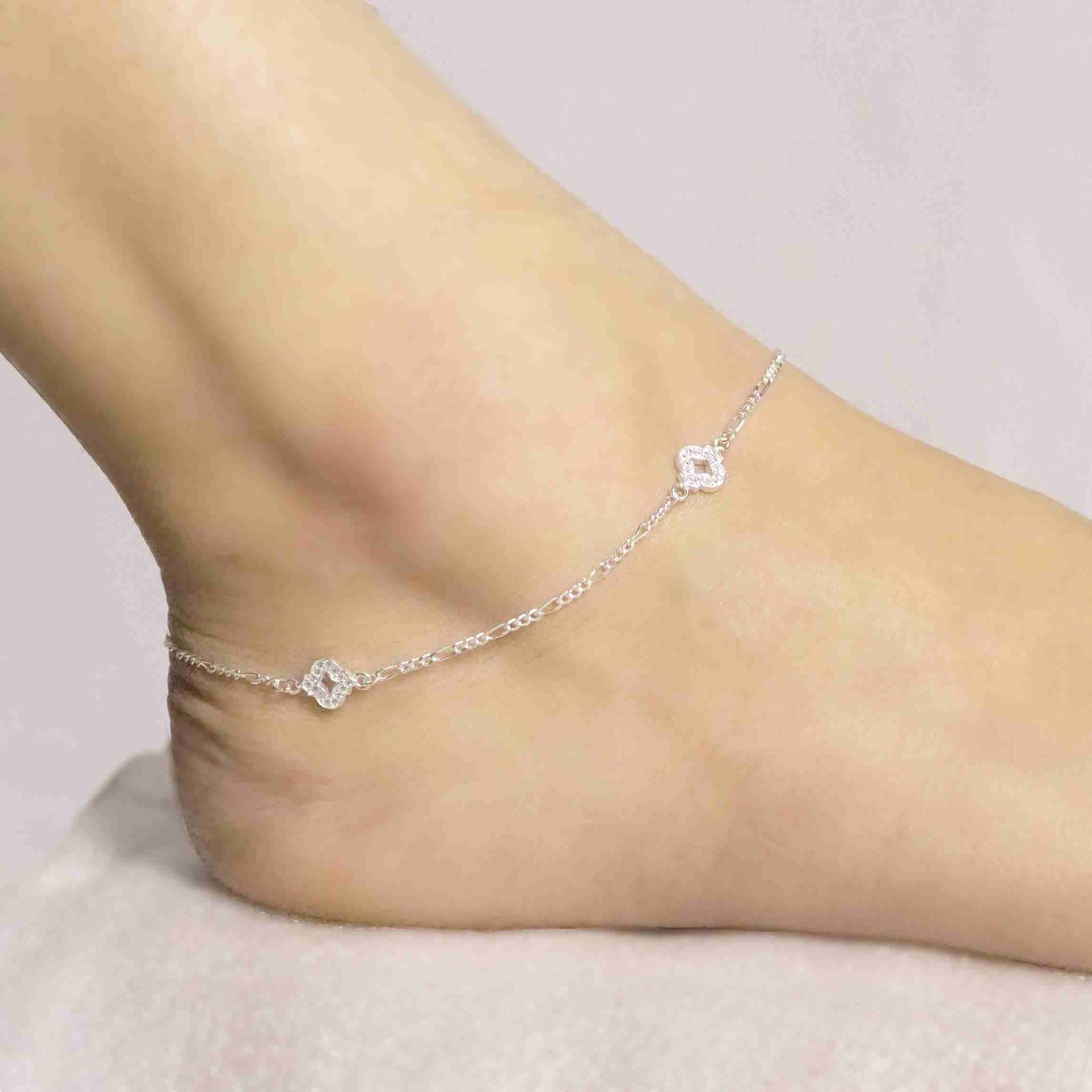 Sterling Silver Traditional Floral design Anklet