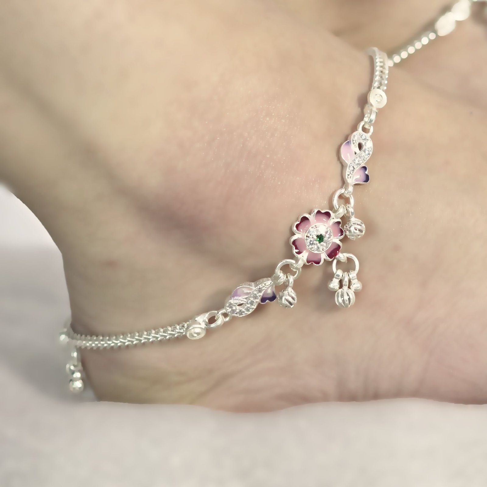 Sterling Silver Double Layer Floral design Anklet