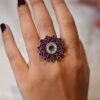 Traditional Oxidised Green Cutstone Floral Ring